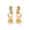 A golden reminder that our actions and energy are critical in shaping the world around us. Crescent moons symbolise a time of transition, twinkling stars wink at infinite possibility, and serpents point to the value of wisdom on the path to healing. Brass with sterling silver posts. Nickel and lead free.