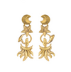 A golden reminder that our actions and energy are critical in shaping the world around us. Crescent moons symbolise a time of transition, twinkling stars wink at infinite possibility, and serpents point to the value of wisdom on the path to healing. Brass with sterling silver posts. Nickel and lead free.