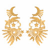 Coiling snakes are set amongst celestial motifs in this mysterious and energetic pair. Brass with sterling silver posts. Nickel and lead free.