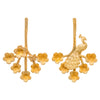 Peacocks perch on a burst of blooms. Brass with sterling silver posts. Nickel and lead free.